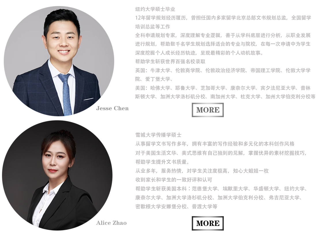 超行业一线水准, 全总监级别的咨询申请经验, 师资团队均毕业于世界百强名校。